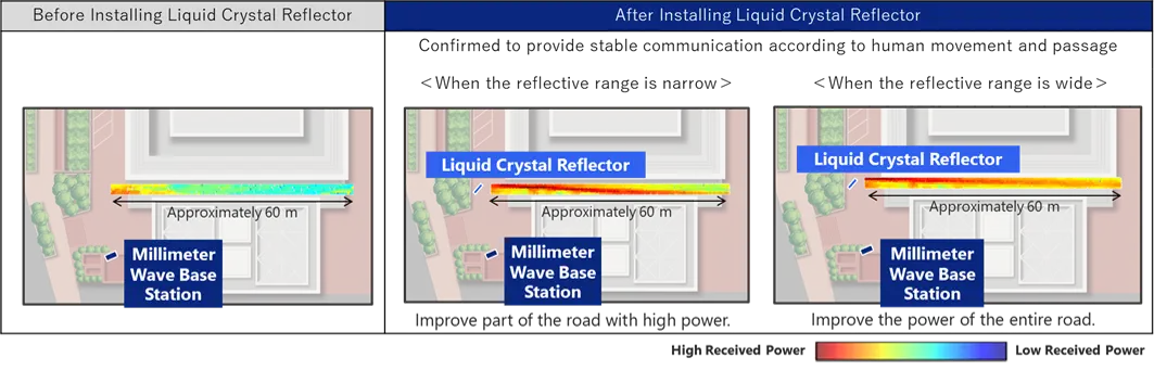 •Confirmation that commercial millimeter waves can be reflected to pinpoint areas where radio waves are difficult to reach due to building obstructions using the liquid crystal reflector.
